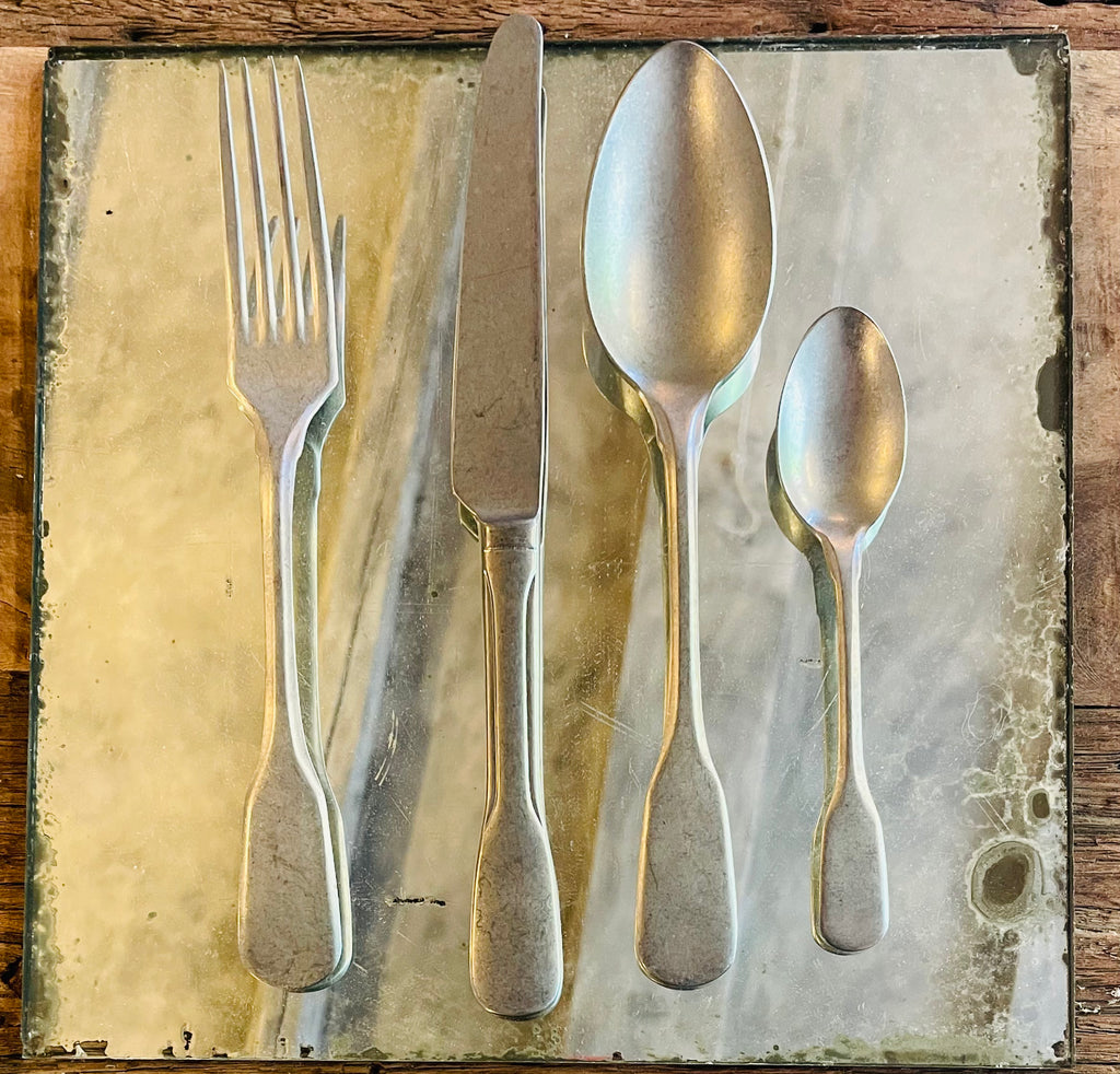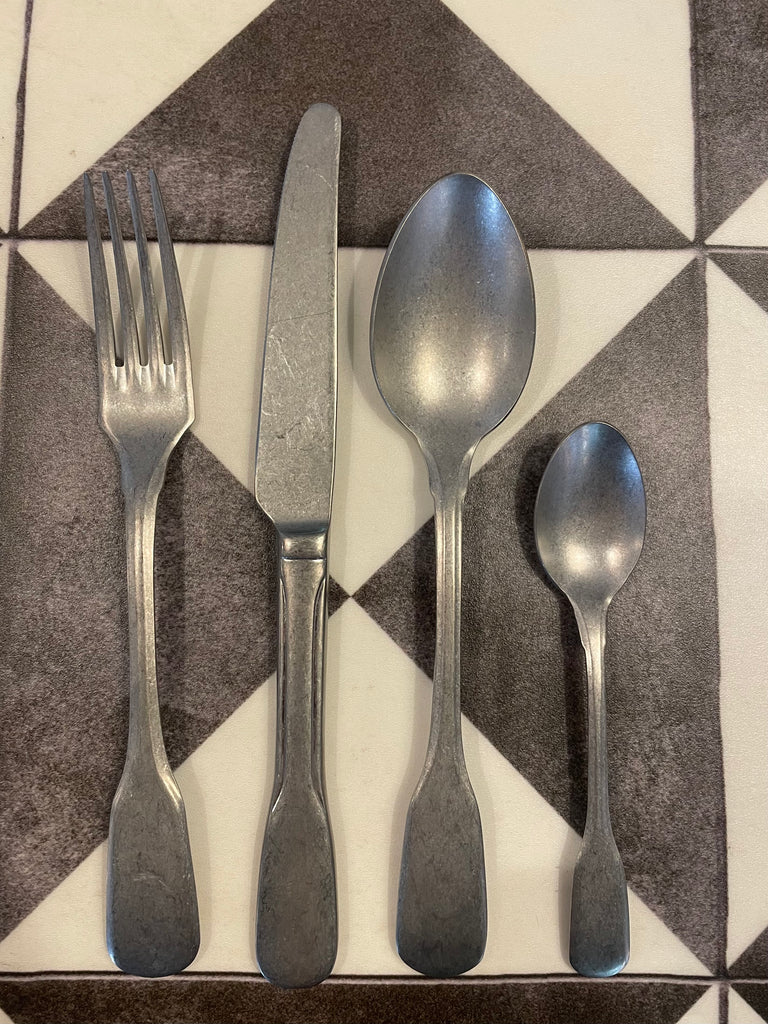 Set 4 pezzi, acciaio inox, finitura opaca stone washed, design vintage, adatto alla lavastoviglie