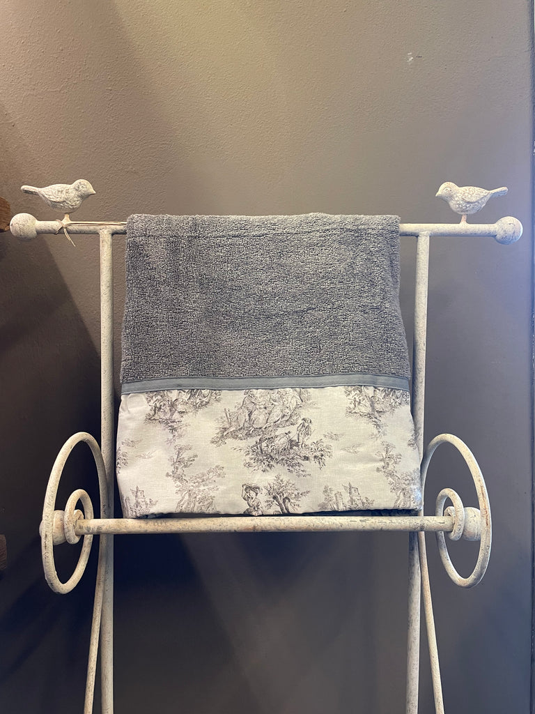 Coppia asciugamani in 100% spugna di cotone, colore grigio scuro con balza cotone Toile de Jouy